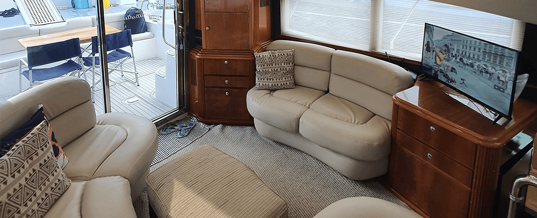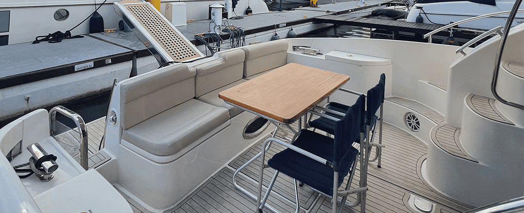 Não é permitido fumar a bordo, salvo em locais abertos como a popa (parte de trás) e no fly-bridge.
