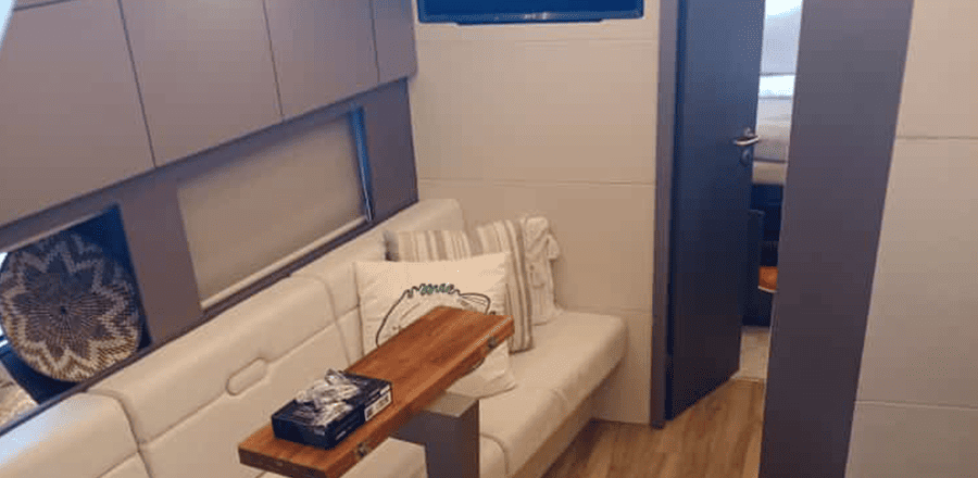 Não é permitido fumar a bordo, salvo em locais abertos como a popa (parte de trás) e no fly-bridge.