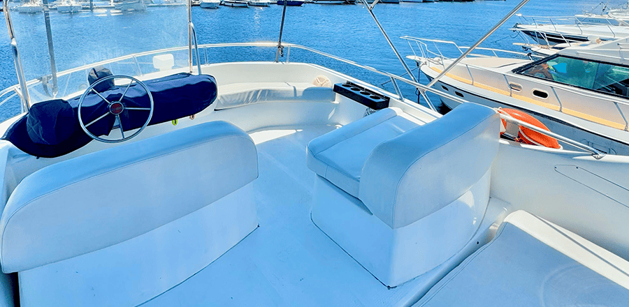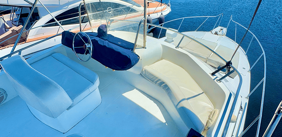 Não é permitido fumar a bordo, salvo em locais abertos como a popa (parte de trás) e no fly-bridge.