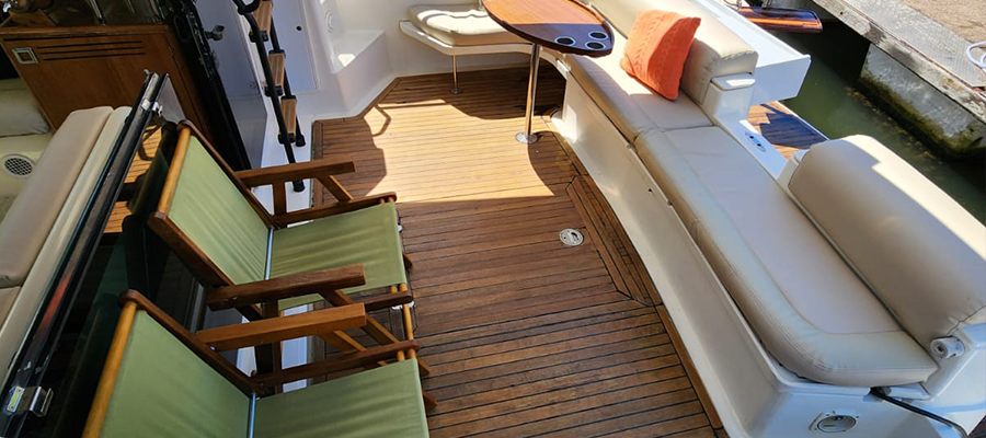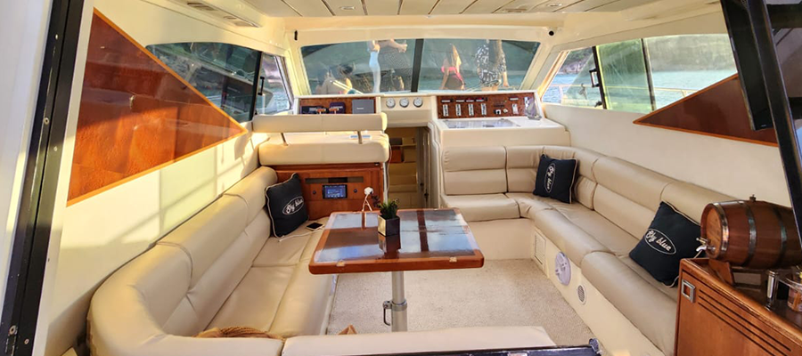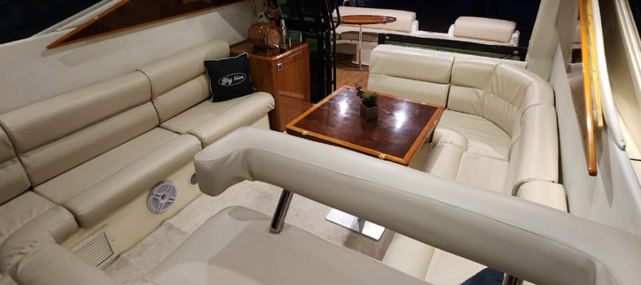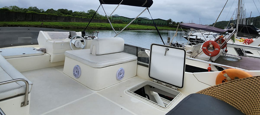 Não é permitido fumar a bordo, salvo em locais abertos como a popa (parte de trás) e no fly-bridge.