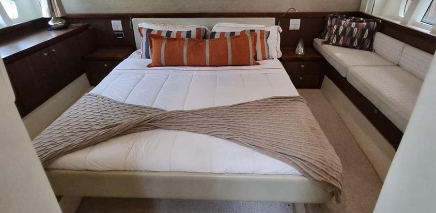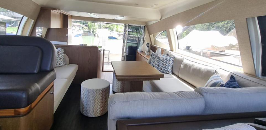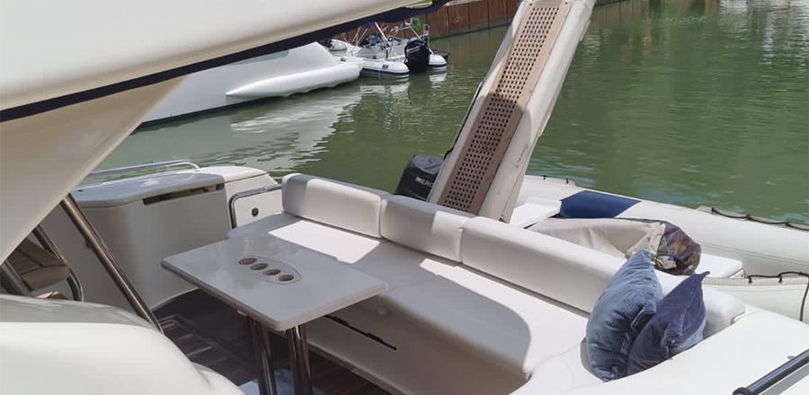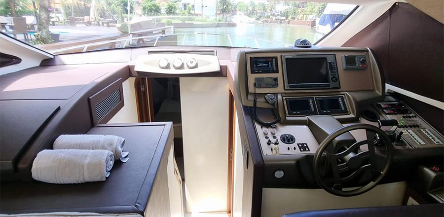 Não é permitido fumar a bordo, salvo em locais abertos como a popa (parte de trás) e no fly-bridge.