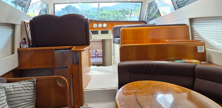 Não é permitido fumar a bordo, salvo em locais abertos como a popa (parte de trás) e no fly-bridge.