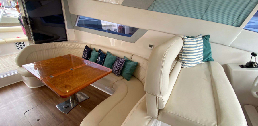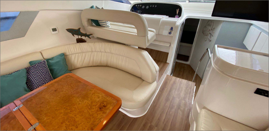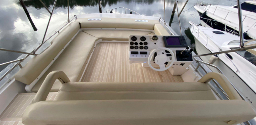 Não é permitido fumar a bordo, salvo em locais abertos como a popa (parte de trás) e no fly-bridge.