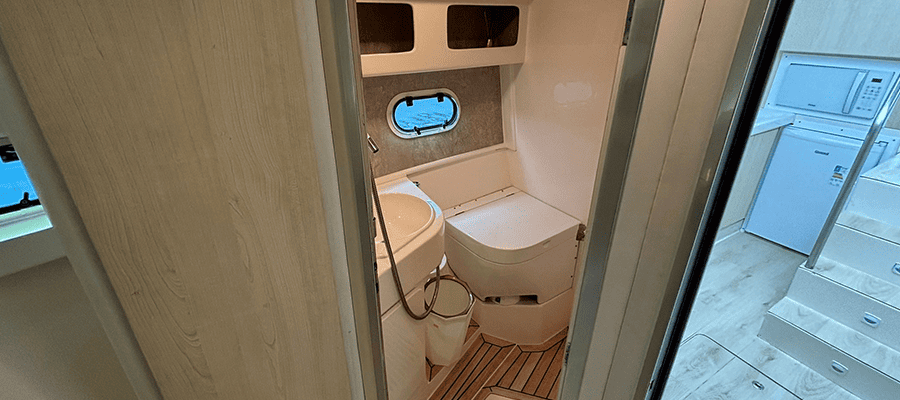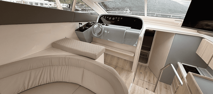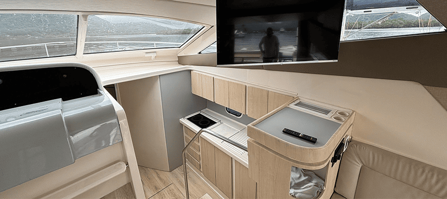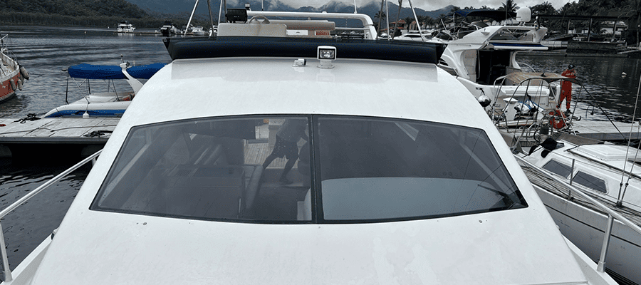 Não é permitido fumar a bordo, salvo em locais abertos como a popa (parte de trás) e no fly-bridge.