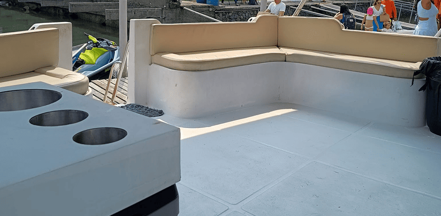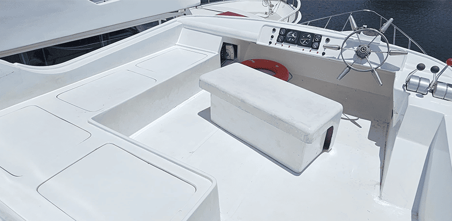 Não é permitido fumar a bordo, salvo em locais abertos como a popa (parte de trás) e no fly-bridge.