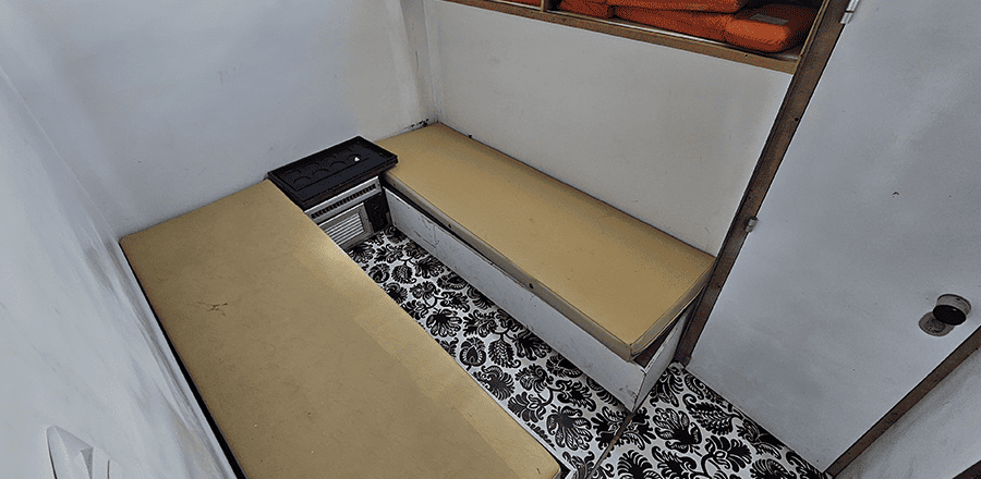 Não, o marinheiro dorme na embarcação, mas no quarto ou espaço para a tripulação, ou seja, ele tem um espaço reservado para ele, onde não tira a privacidade dos passageiros e está a disposição durante toda a noite, caso precisem de ajuda ou de alguma informação.