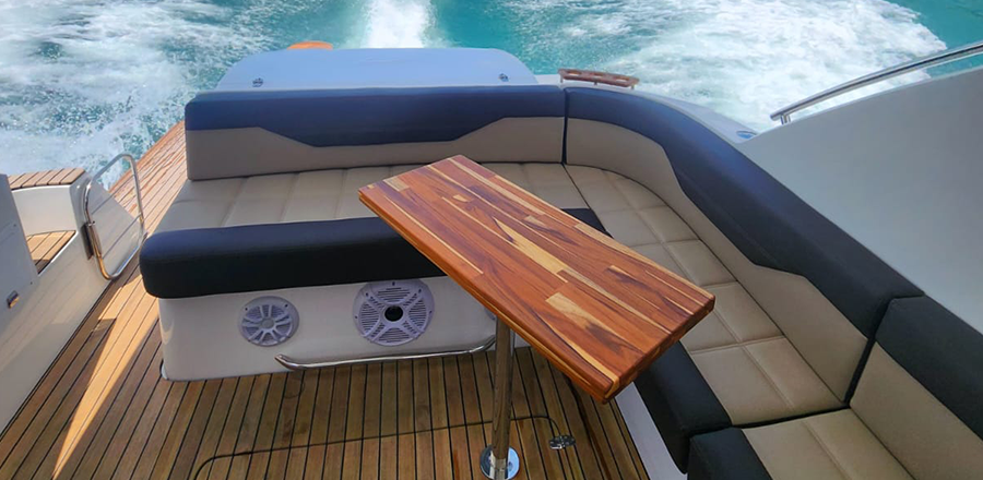 Não é permitido fumar a bordo, salvo em locais abertos como a popa (parte de trás) e no fly-bridge.